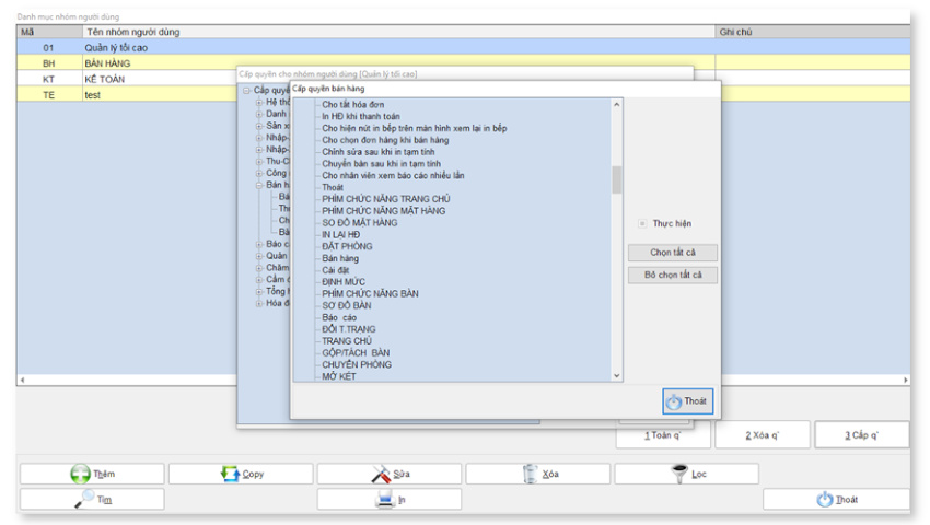 Phân quyền theo nhân viên, chức năng
